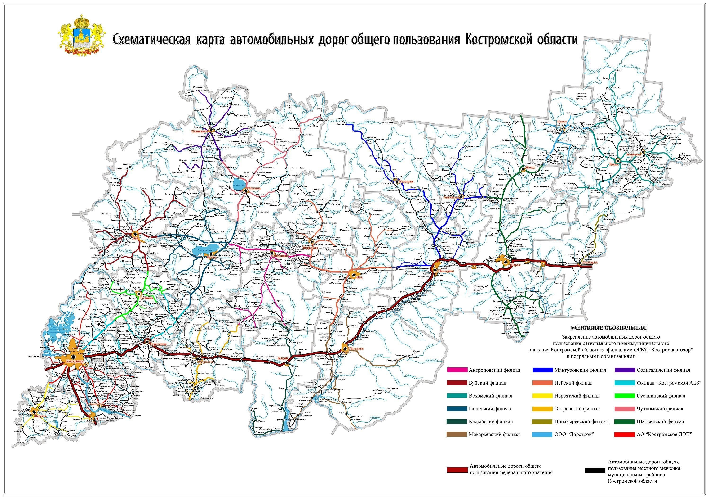 Карта авто­мо­биль­ных до­рог Кост­ром­ской об­лас­ти